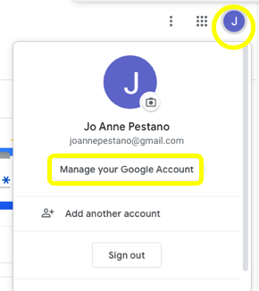 1. Go to your profile on the left top corner and click "Manage your Google Account." You may also go to this link password.google.com
