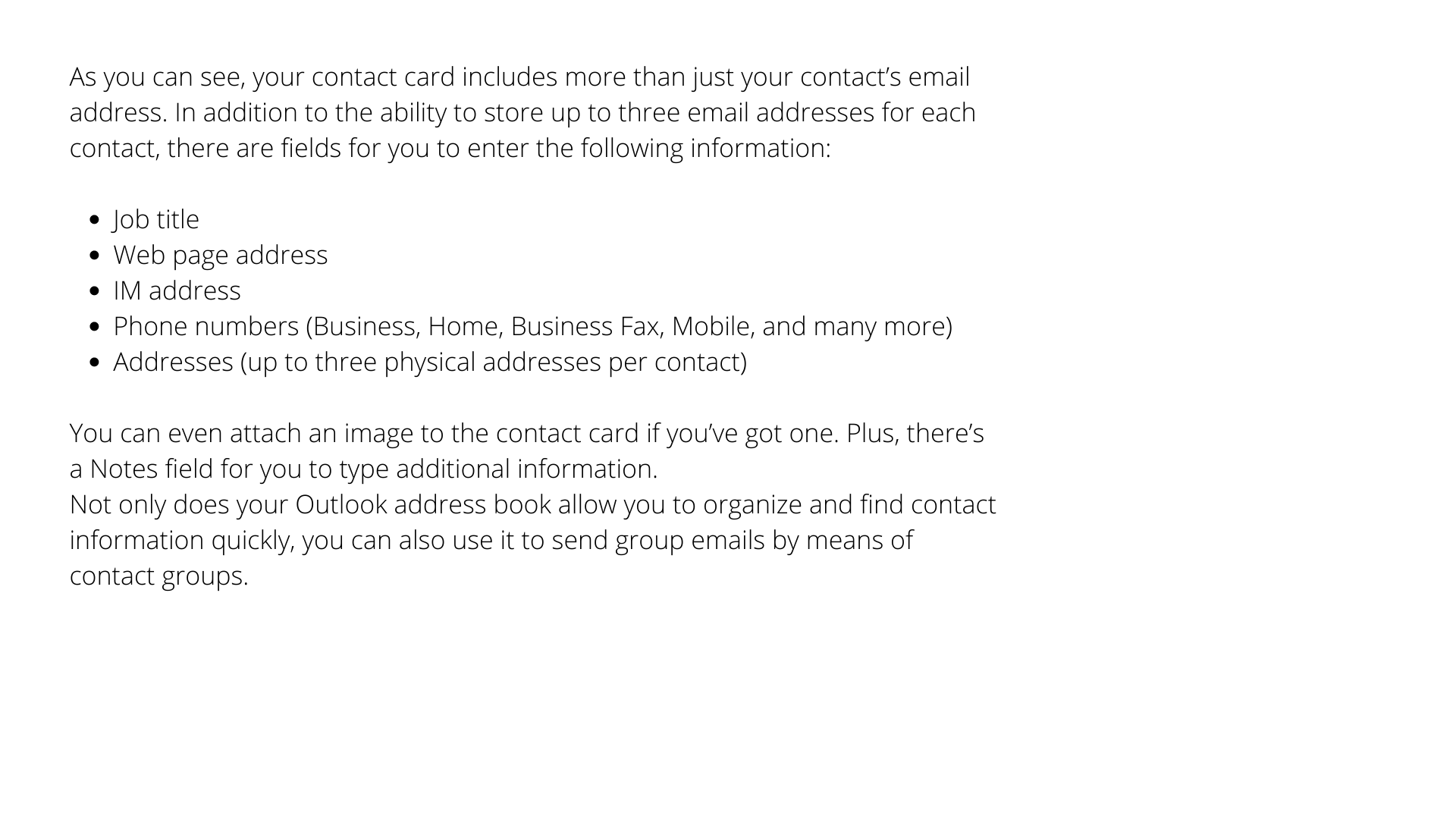For frequent contacts, Outlook allows you to keep multiple online address books