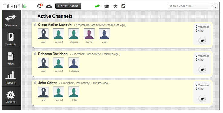 Exchange files and messages in a single secure space. Logically organize files by client, project, or subject matter.