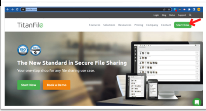1. Type the titanfile link https://www.titanfile.com/ in the web browser.
