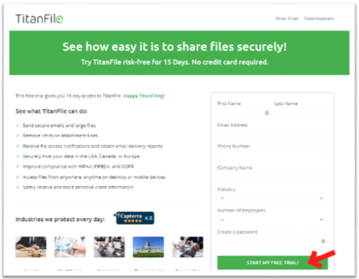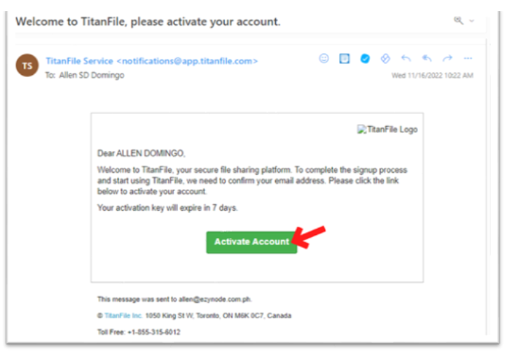 4. An email notification from Titanfile will be sent to the email you registered. Click on the green button to activate your free trial account.