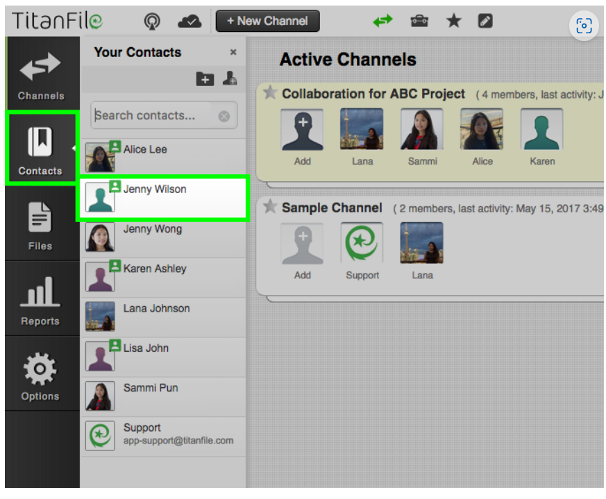 To remove a contact from your contact panel, select Contacts in your left side menu and choose the contact you wish to remove.