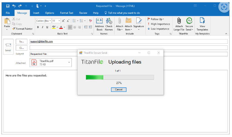 Want to send large files through TitanFile using Microsoft Outlook™ ? It’s easy.