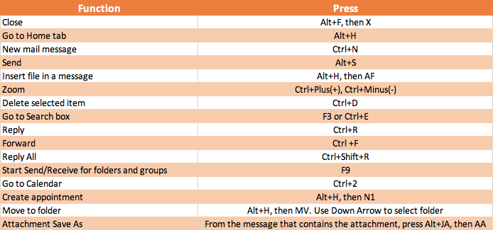 Outlook has certain keyboard keys that will help you navigate through the program and ease communication.