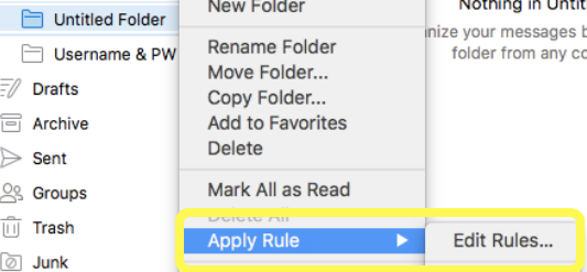 - Next, right-click on the new folder, select "Apply Rule" and then click on 'Edit Rules"