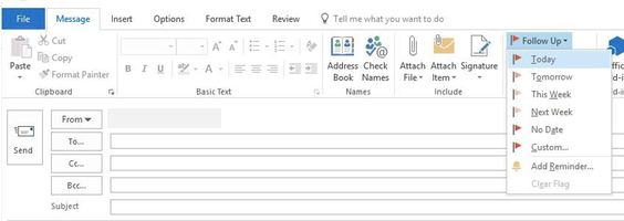 - Before you send an email, find the "Follow Up" button in the Message Ribbon.